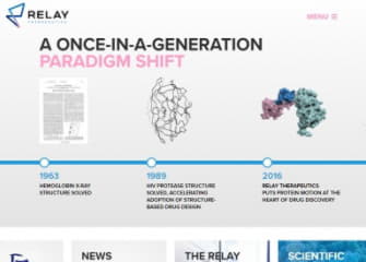 Relay Therapeutics is committed to discovering and developing medicines that will make a transformative difference for patients by building the first dedicated drug discovery pipeline centered on protein motion. Bringing together the latest scientific advances in structural biology, biophysics, computation, chemistry and biology, Relay’s drug discovery engine illuminates the full mobility of a protein and the ways in which protein motion regulates function. By applying this approach and by focusing on disease-causing targets, Relay aims to develop breakthrough medicines for patients in need. The company’s initial programs are focused on developing therapeutics in oncology. Headquartered in Cambridge, Massachusetts, Relay Therapeutics is a private company launched in 2016 with financing from Third Rock Ventures and an affiliate of D. E. Shaw Research.